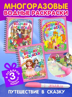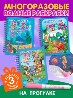 Многоразовая водная раскраска. Набор из 3 шт. с маркерами