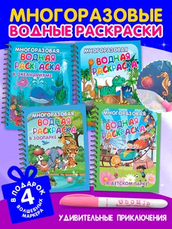 Многоразовые водные раскраски Набор 4 шт. с маркерами