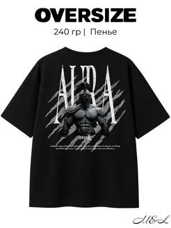 Футболка оверсайз с принтом AURA с гладиатором и силой
