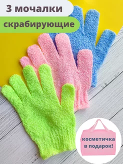 Мочалка перчатка массажная 3 шт + косметичка