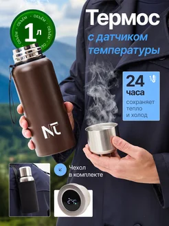 Термос вакуумный с датчиком температуры 1л в чехле