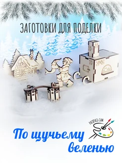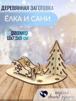 Заготовка для поделки Новогодняя Ёлка и сани деревянные