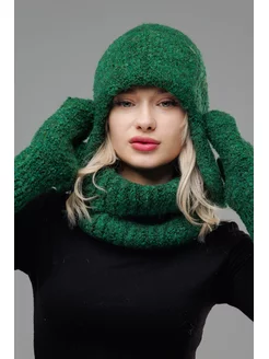 берет с шарфом и варежками комплект