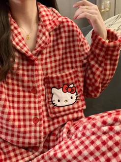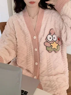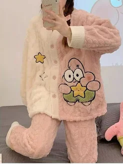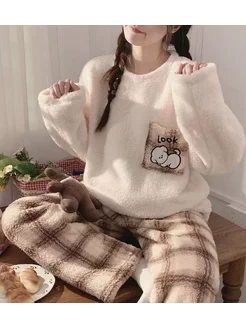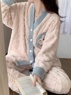 Пижама со штанами теплая плюшевая женская костюм домашний