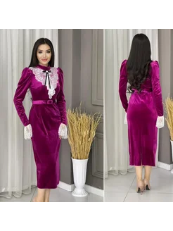 Платье бархатное с белым воротником