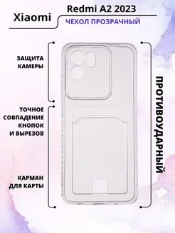 Чехол на Xiaomi Redmi A2 2023 прозрачный с кардхолдером