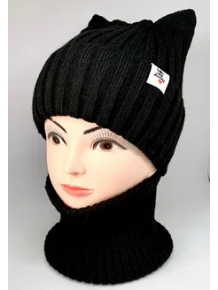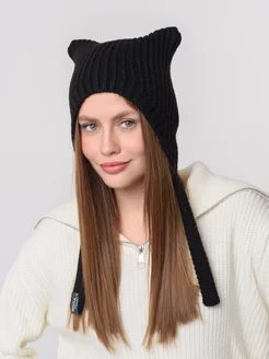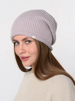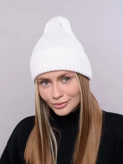 Шапка бини тыковка демисезонная вязаная с отворотом