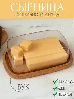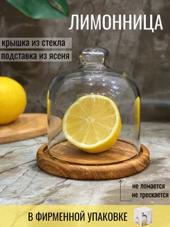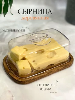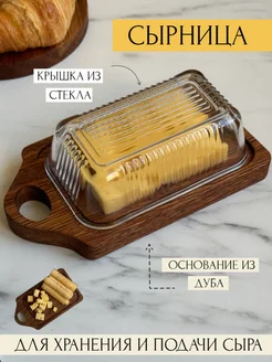 Сырница из дерева дуб с крышкой из стекла c ручкой