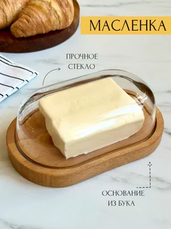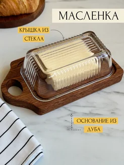 Масленка из дерева дуб со стеклянной крышкой с ручкой