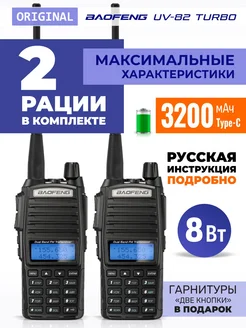 Рации UV-82 2 штуки Turbo Русская инстр. 3200 мАч Type-C