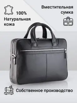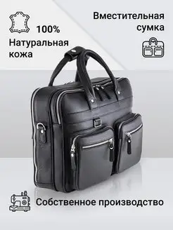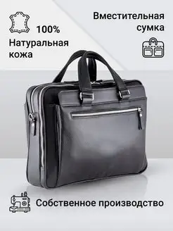 Сумка кожаная вместительная - портфель для ноутбука до 16"