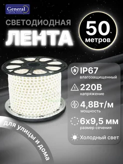 Светодиодная лента 220В, 4,8 Вт м, 50 м, Холодный, ip67