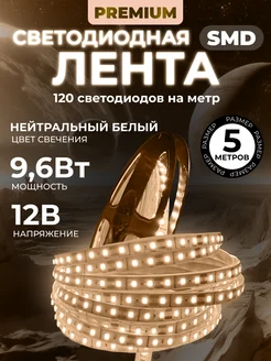 Светодиодная лента 12v 5м, 9,6 Вт м, Нейтральная белая