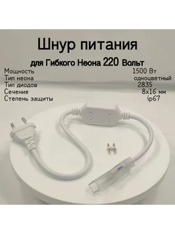 Шнур питания для неона 8х 16 NL, 220 В, IP67