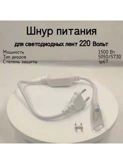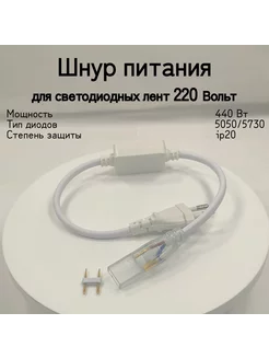 Шнур питания для светодиодной ленты 5050 и 5730, 220В, IP20