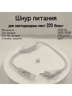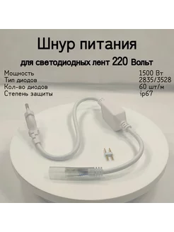 Шнур питания для светодиодной ленты 60 диодов, 220 В, IP67