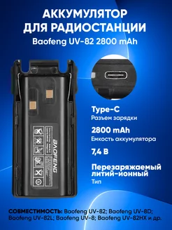 Аккумулятор для рации UV-82 (Type-C, 2800 мА*ч)
