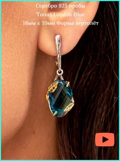 Серьги женские серебро 925 с камнем топаз лондон блю