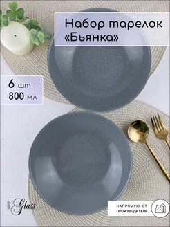 Набор стеклянных глубоких тарелок на 6 персон для сервировки