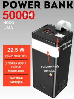 Повербанк HOCO J86A 50000mAh с фонариком быстрая зарядка