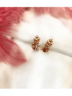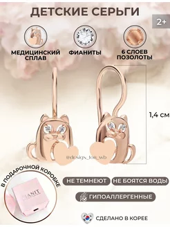 Детские позолоченные серьги золотые сережки с позолотой коты