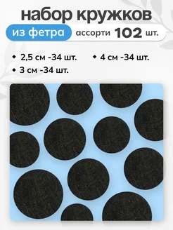 Фетровые диски кружочки черные набор 102 шт ассорти