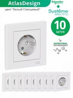 Одинарная розетка с заземлением Шнайдер Atlas Design 10шт