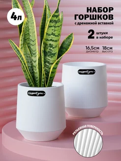 Набор горшков с фитильным поливом 2 шт с дренажной вставкой