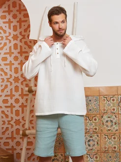 Хлопковая пижама со штанами и рубашкой на пуговицах