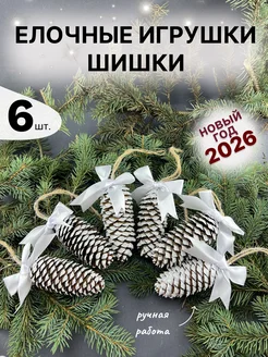 Елочные игрушки натуральные шишки с бантом