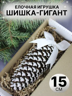 Елочная игрушка белая большая шишка с бантом