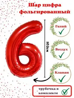 Фольгированный воздушный шар цифра 6 на праздник 102 см