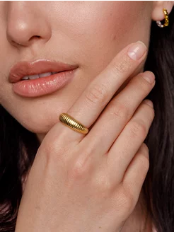 Кольцо женское волнистое безразмерное бижутерия под золото