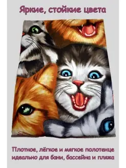 Полотенце пляжное вафельное "Веселые коты" 75*150 см