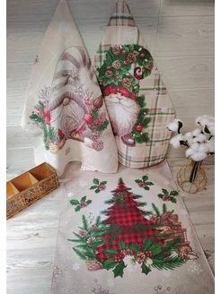 Набор полотенец для кухни Новогодние гномы 3 шт рогожка