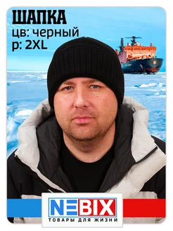 Утеплённая шапка бини на большую голову нв флисе