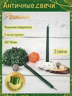 Свечи Античные зеленый муар 25,5 см ручная работа 2 шт