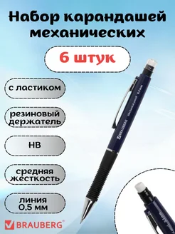 Карандаш механический чернографитный HB 0,5мм набор 6 штук