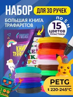 Набор для 3Д PETG-пластик 15 цветов + Книжка с трафаретами