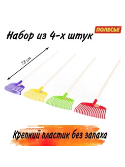 Набор из 4-х штук Детские Грабли с деревянным черенком