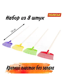 Набор из 8-и штук Детские Грабли с деревянным черенком