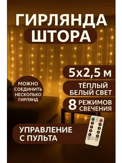 Гирлянда светодиодная занавес 5*2,5 с пультом управления