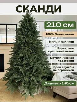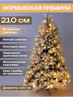Елка искусственная заснеженная литая с гирляндой 210 см