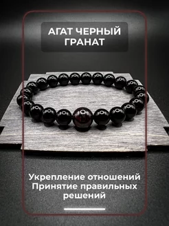 Браслет Агат Черный (ТОН) натуральный 8 мм и Агат Ботсвана