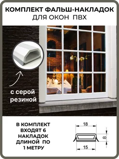 Фальш-накладка для окон ПВХ с серой резиной-18 мм