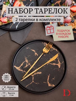 Набор посуды из 6 тарелок черный мрамор 25 см