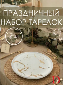 Набор из 2 глянцевых тарелок плоских мятый фарфор 19,5 см
