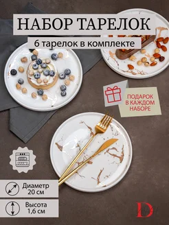 Набор посуды 6 тарелок белый мрамор 20 см