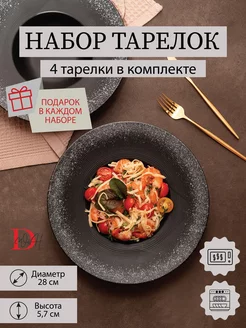 Набор посуды 4 тарелки для пасты шляпа чёрные 28 см
