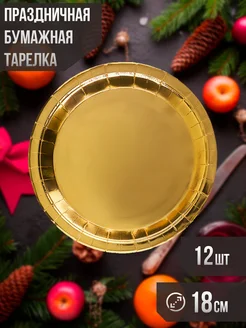 Тарелки одноразовые золотой металлик 18 см 12 шт